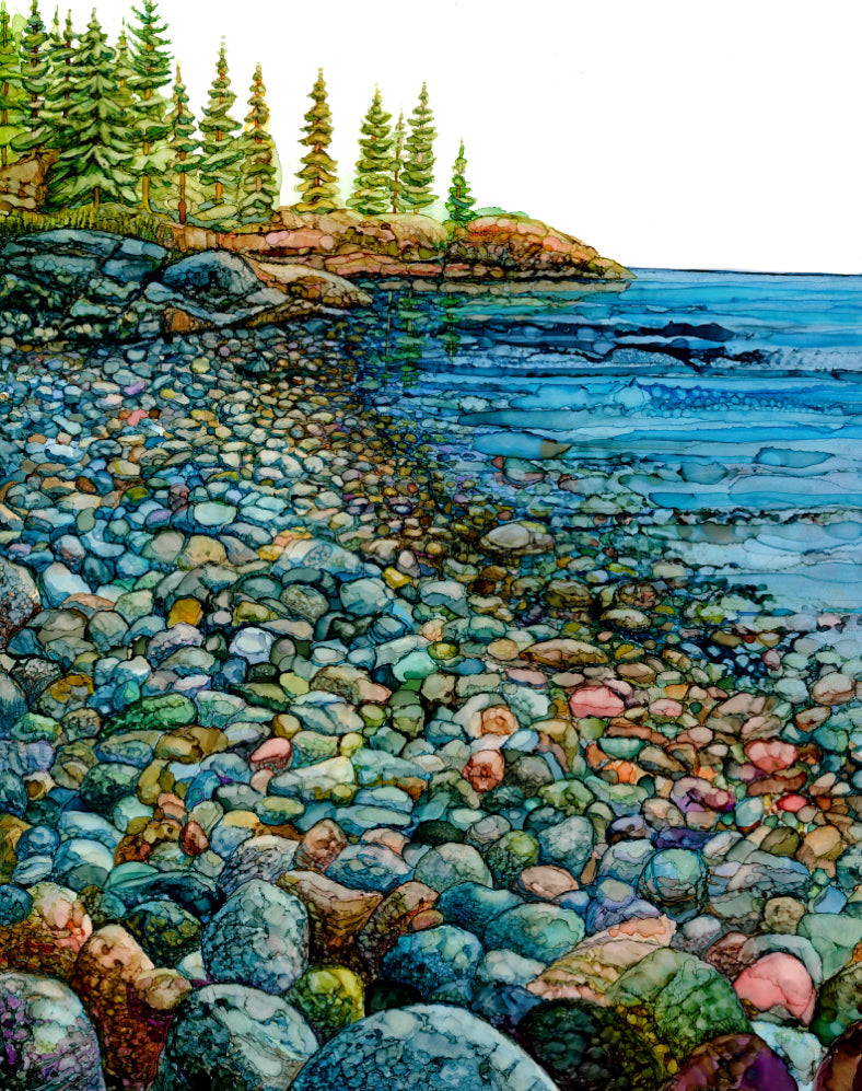 This is “the shore property” on Lake Huron just west of Thessalon, Ontario. Today there is a year round residence that is far from the “roughing it” level of camping we enjoyed growing up. I painted this for my nephew’s wedding and I plan to paint several of the islands in this bay.